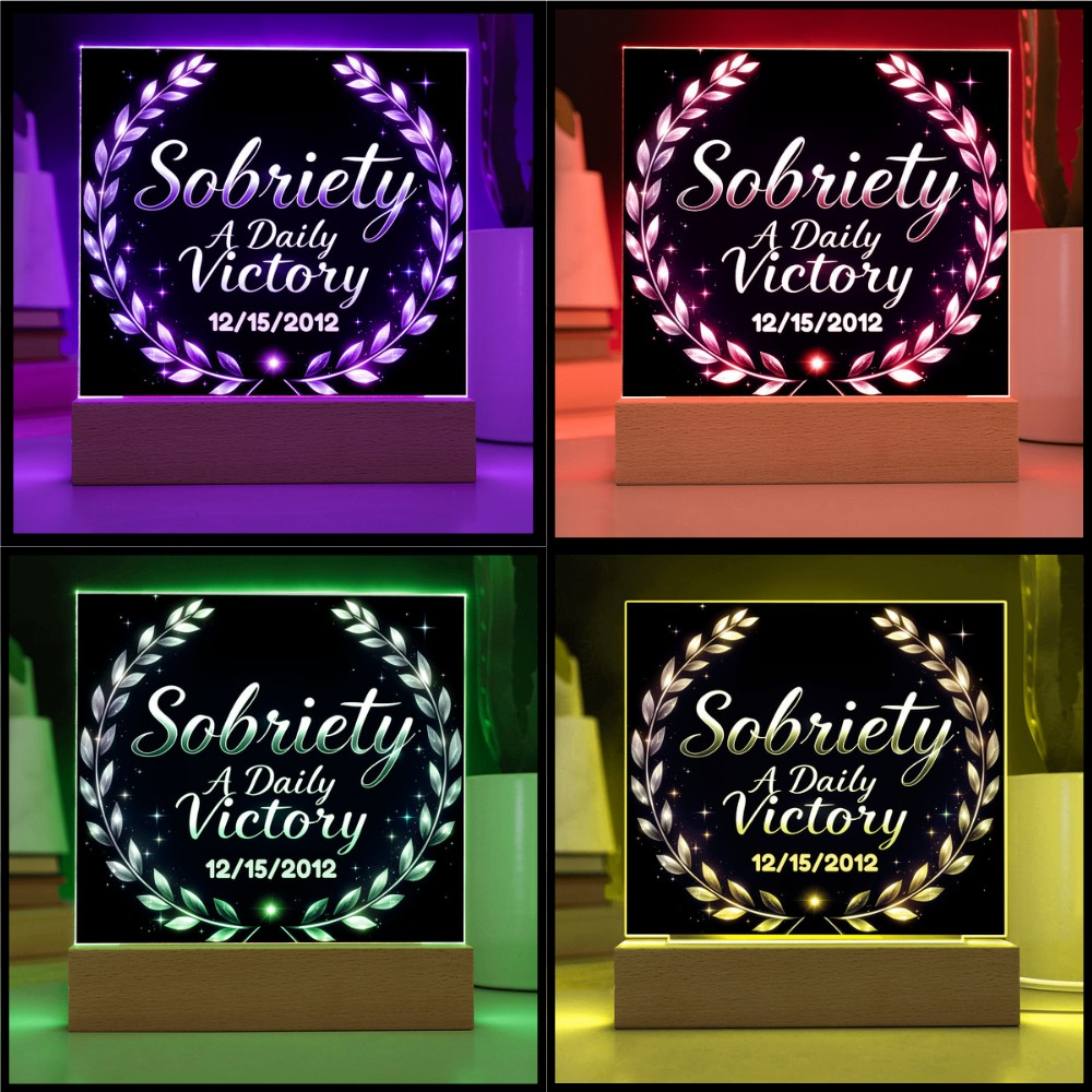 Sobriety A Daily Victory - Personalized LED Square Plaque