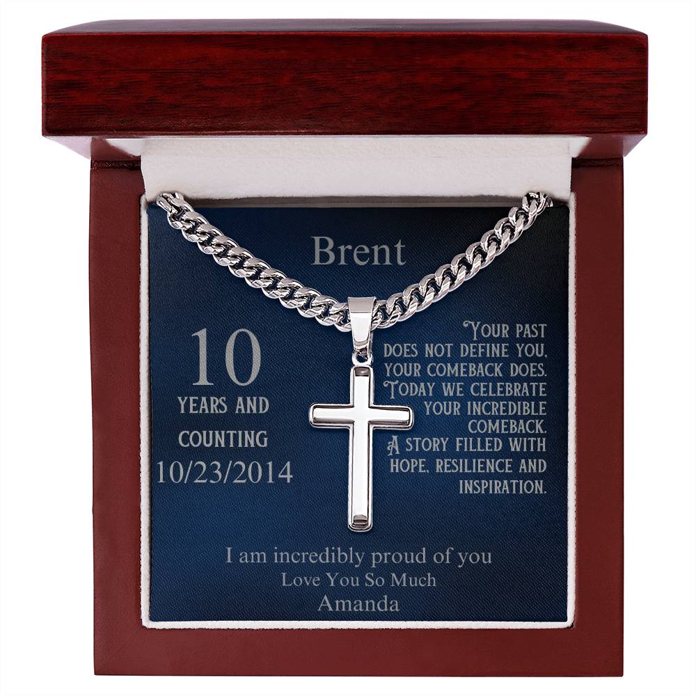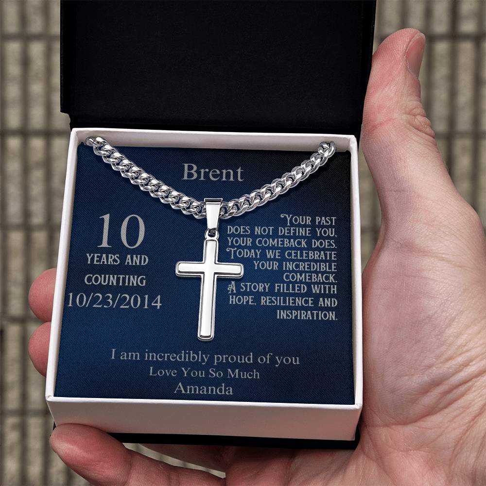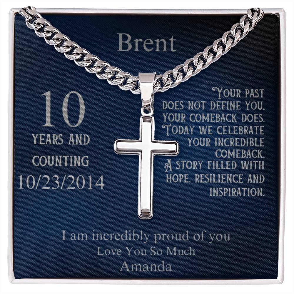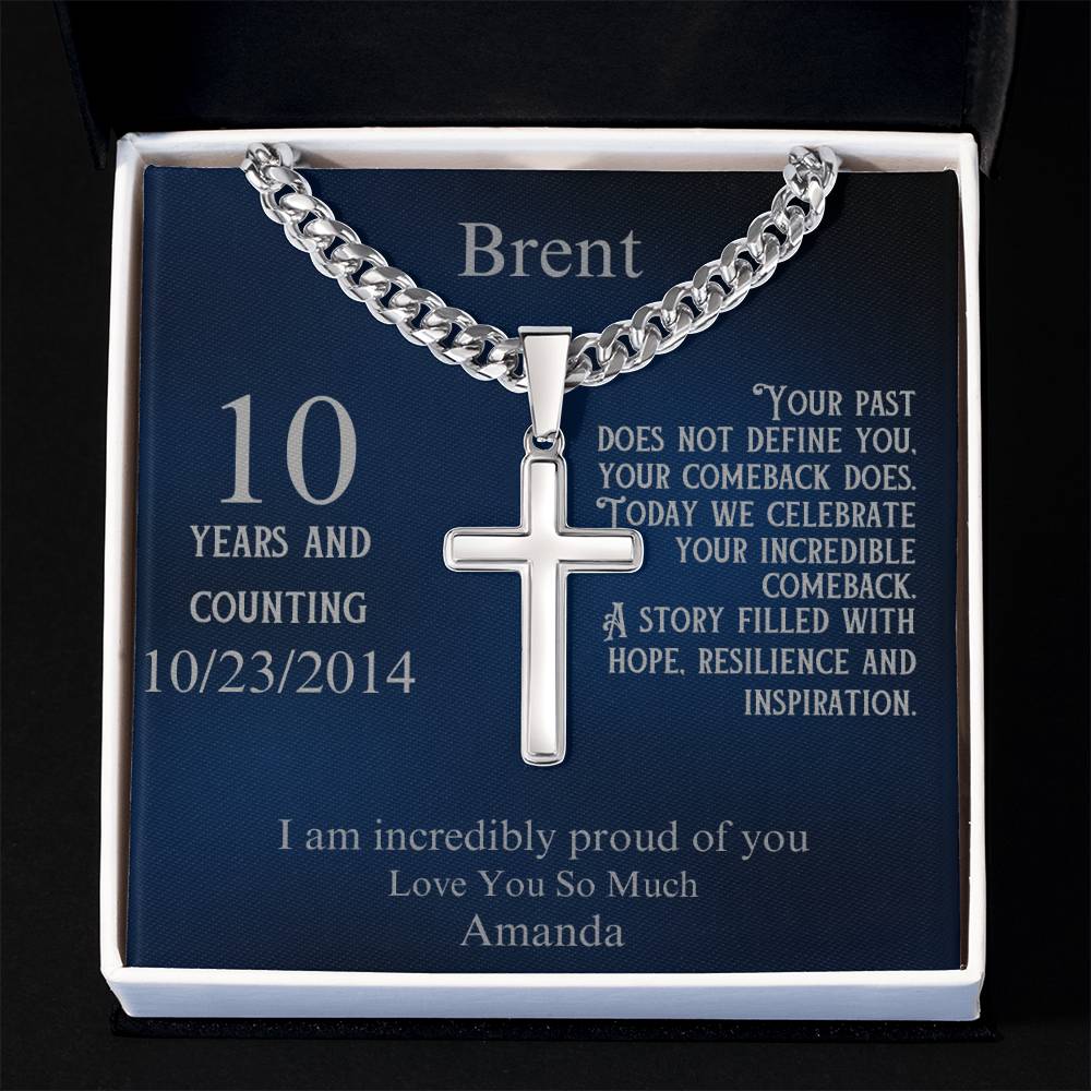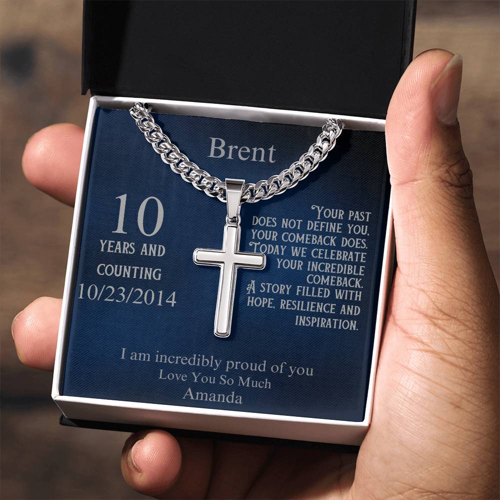The elegant cross pendant is paired with a fully customizable message card. Personalize the recipient's name, their sobriety milestone, a special date, and your heartfelt message. Whether it’s their first year sober or a decade of triumph, this necklace speaks to the power of their comeback and the hope they inspire in others.