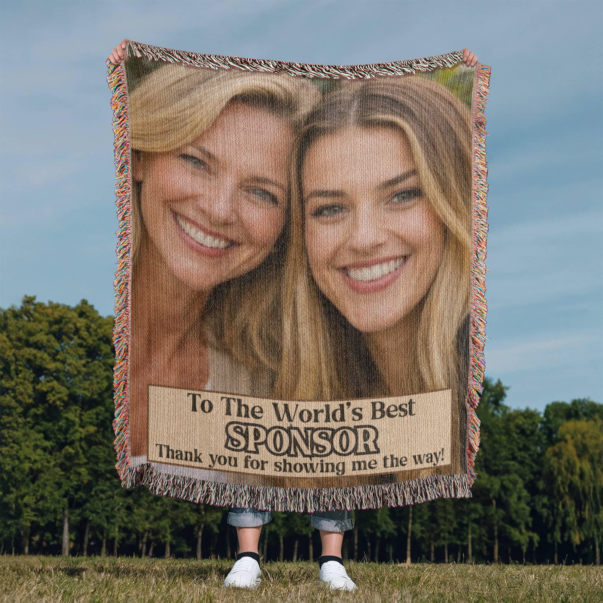 This heirloom-style woven blanket turns your chosen photo into a cozy keepsake—so your sponsor can feel the gratitude every time they wrap up in it.