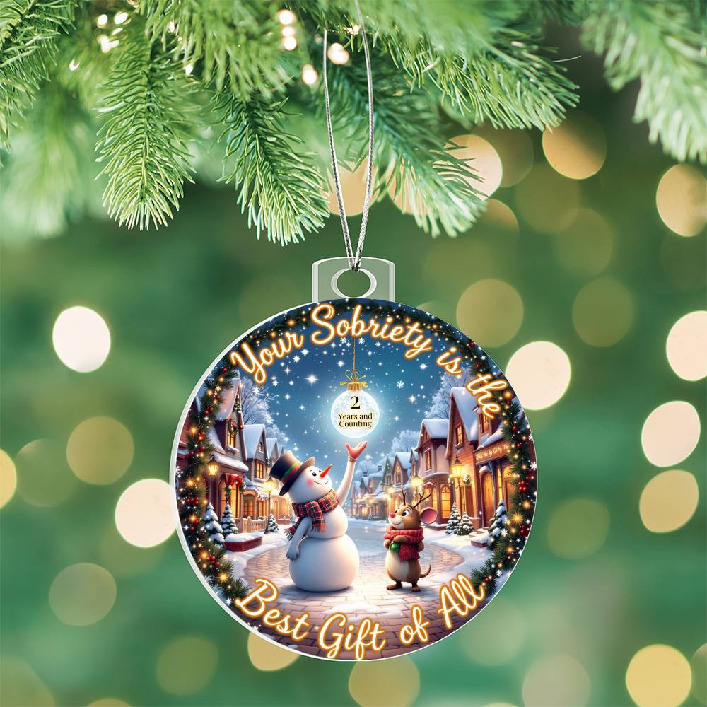 At the center of this festive ornament is a customizable number, allowing you to commemorate any milestone—from 6 months to multiple decades of sobriety. Whether it’s their first holiday in recovery or a long-standing tradition of sober milestones, this ornament shines as a beacon of hope, pride, and love.