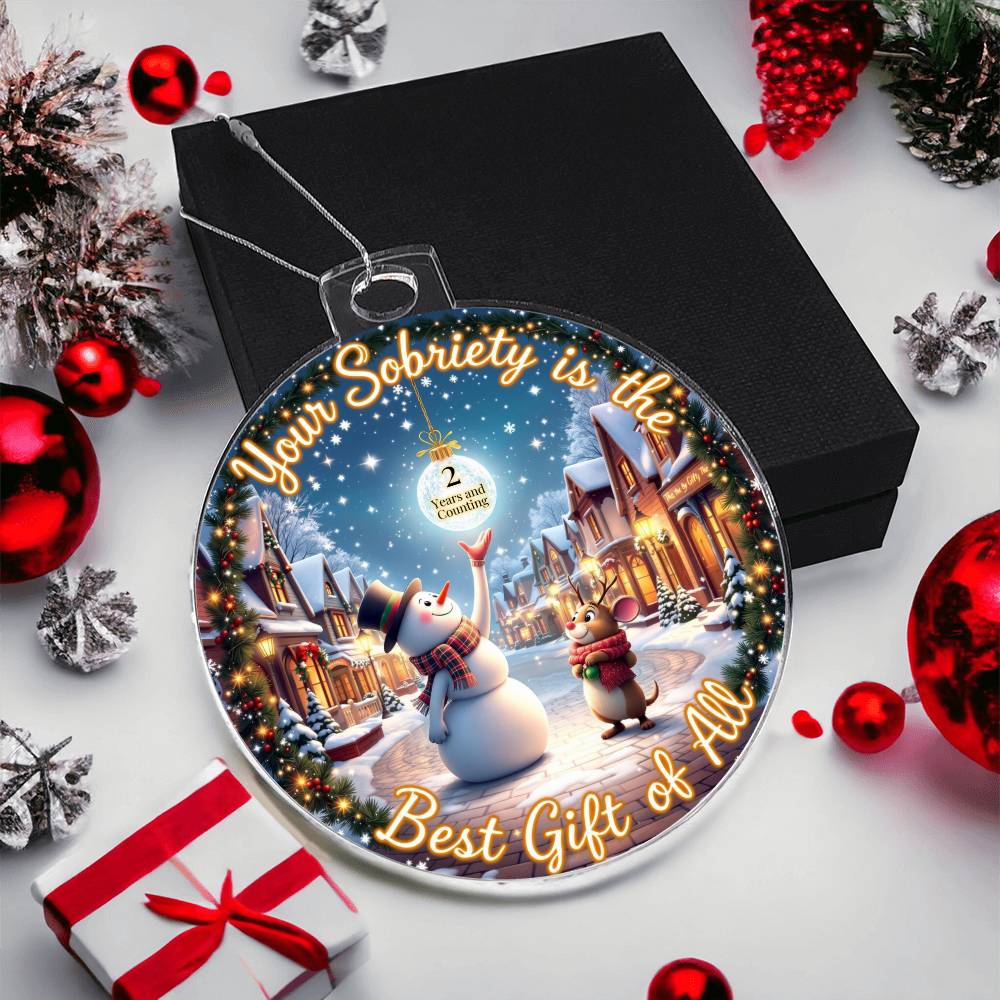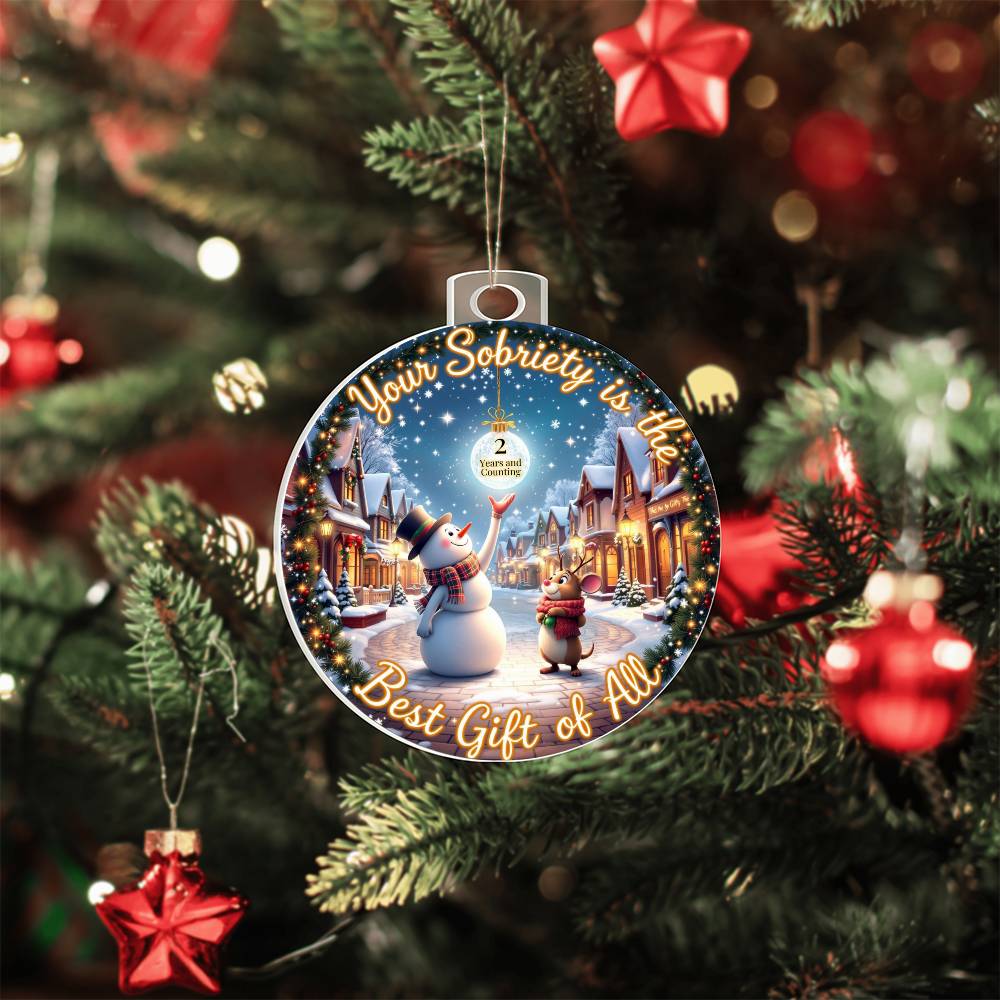 Celebrate the journey of sobriety with this stunning Personalized Christmas Ornament, designed to honor the strength and courage of a loved one in recovery. The heartfelt phrase, "Your Sobriety is the Best Gift of All," captures the emotional essence of watching someone you love transform their life.