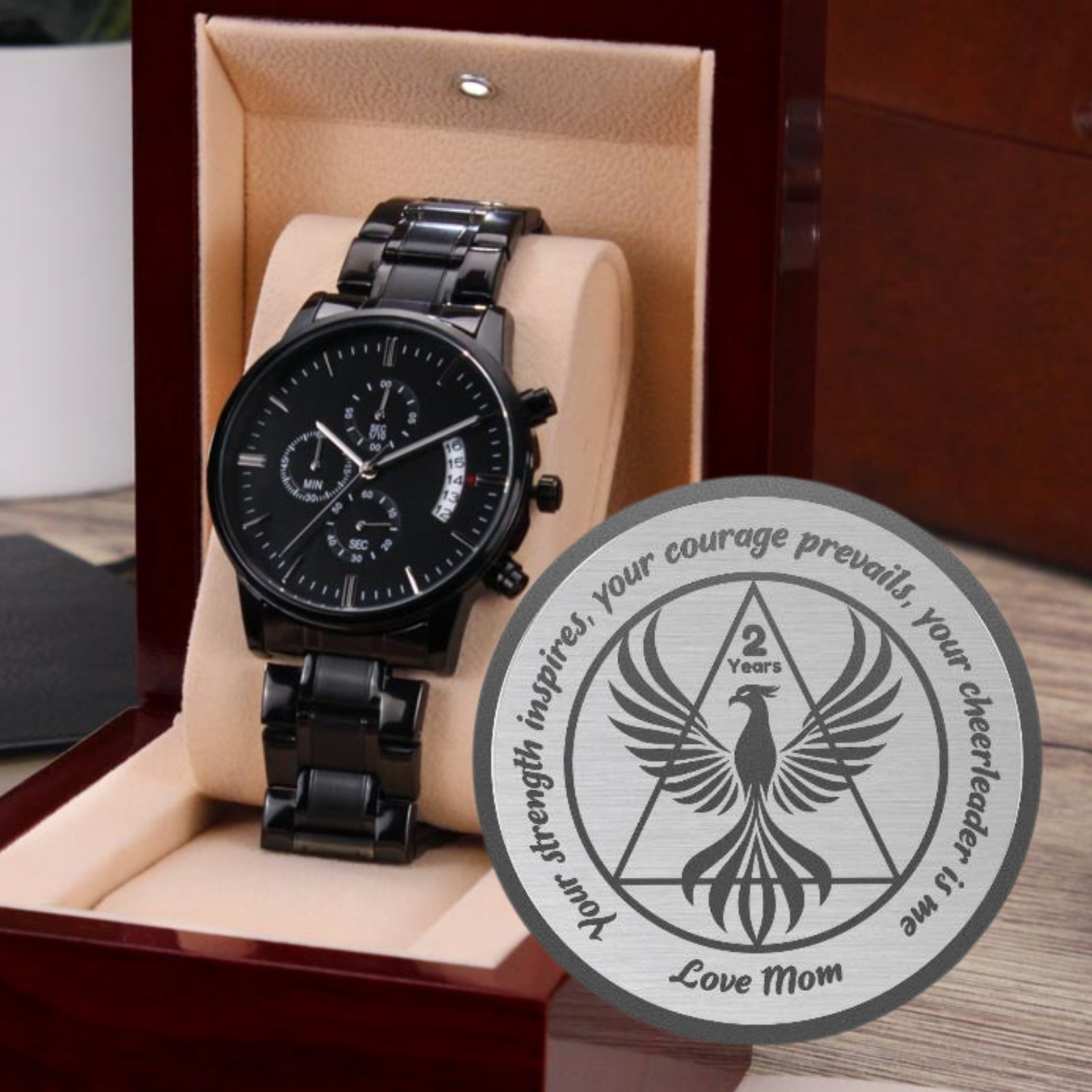 Sobriety Milestone Watch for Son – Custom Phoenix Engraving, Perfect Recovery Gift