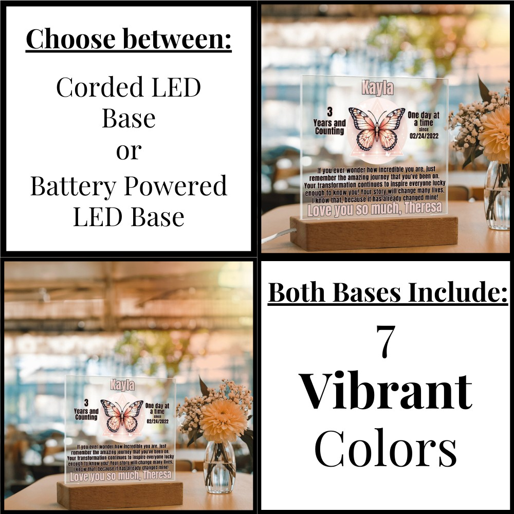 Sobriety is a journey worth celebrating, and this plaque serves as a powerful daily reminder of love, inspiration, and determination. With its custom-printed message and vibrant LED light, it’s a one-of-a-kind keepsake that celebrates milestones and motivates continued growth.