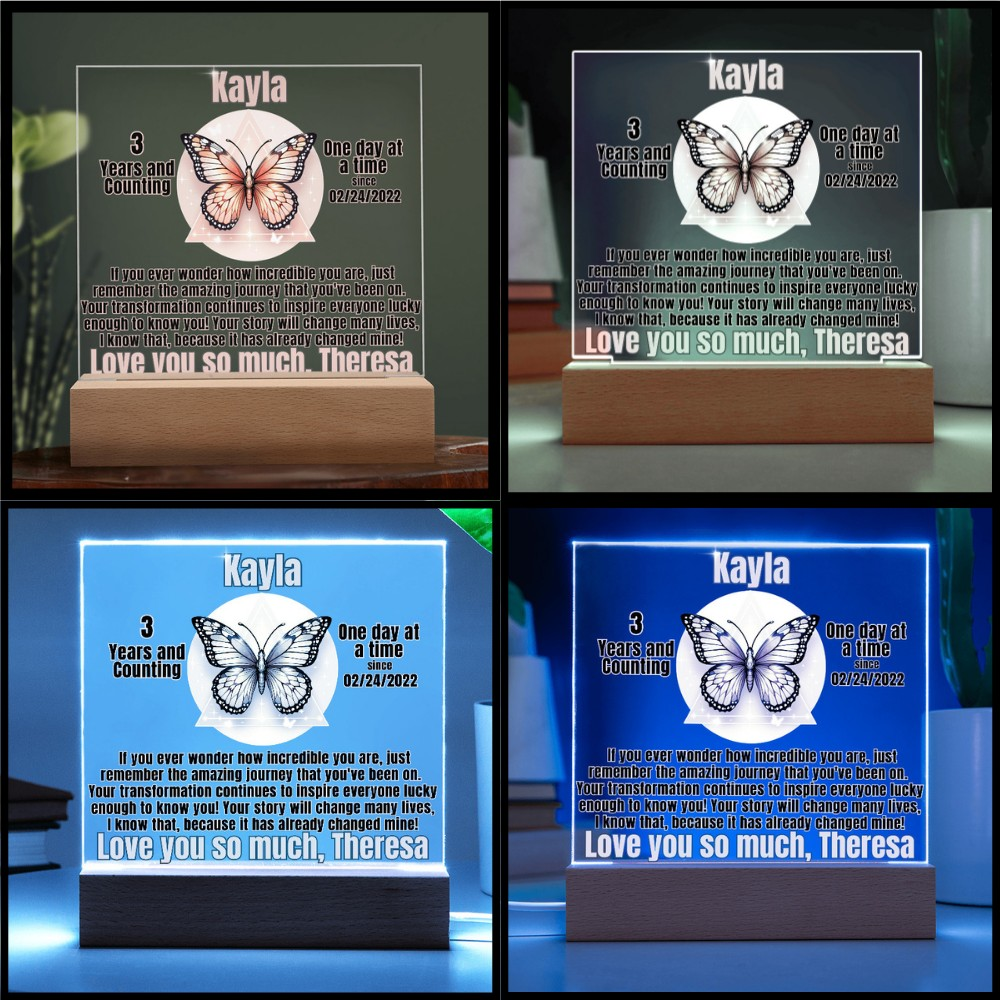 ✨ Celebrate transformation, resilience, and milestones with this beautifully personalized LED acrylic plaque! 💖 Designed to honor the courage and strength of a loved one’s journey, this keepsake is a meaningful way to show your pride and support.