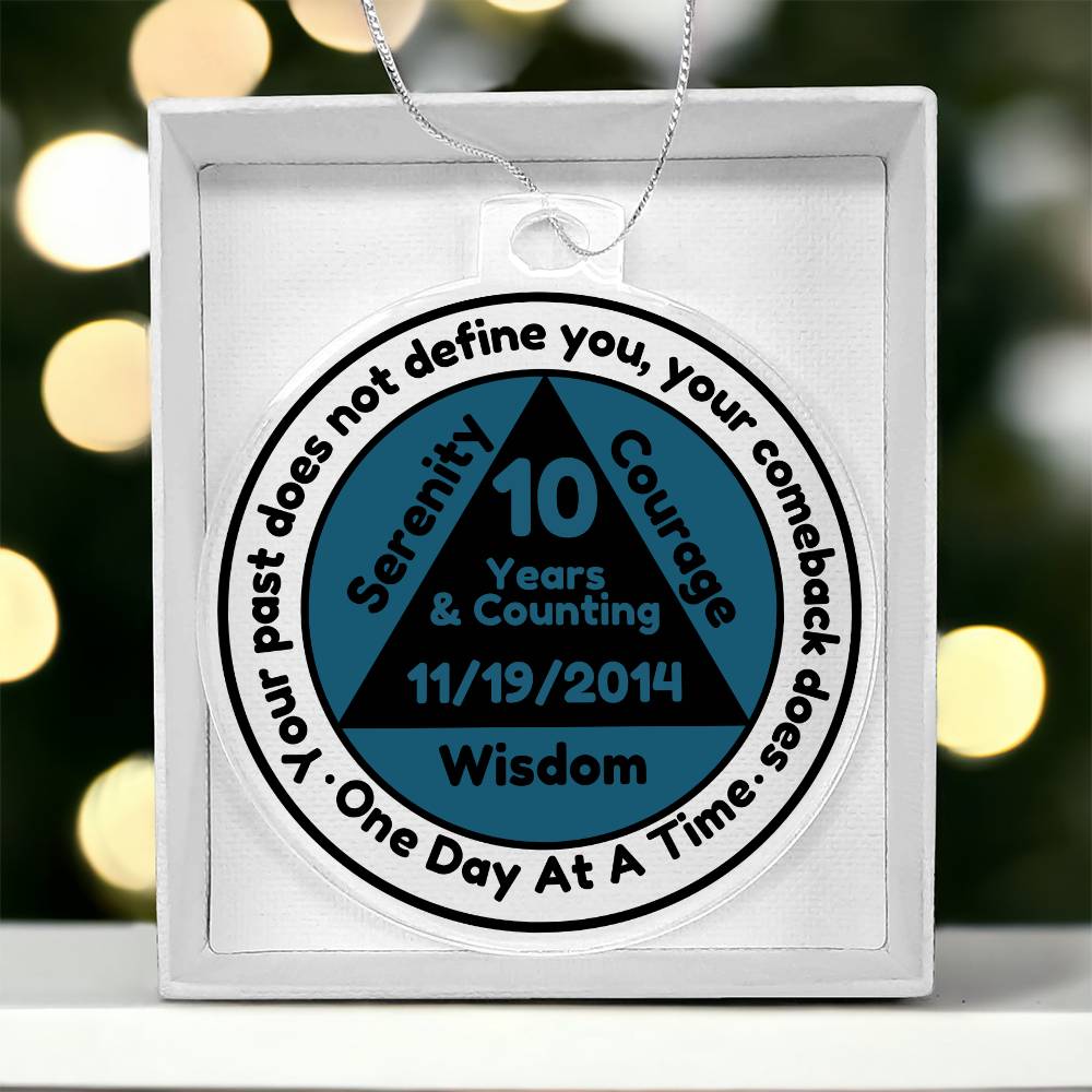 Custom Sober Date Ornament - Serenity, Courage and Wisdom ~ One Day At A Time