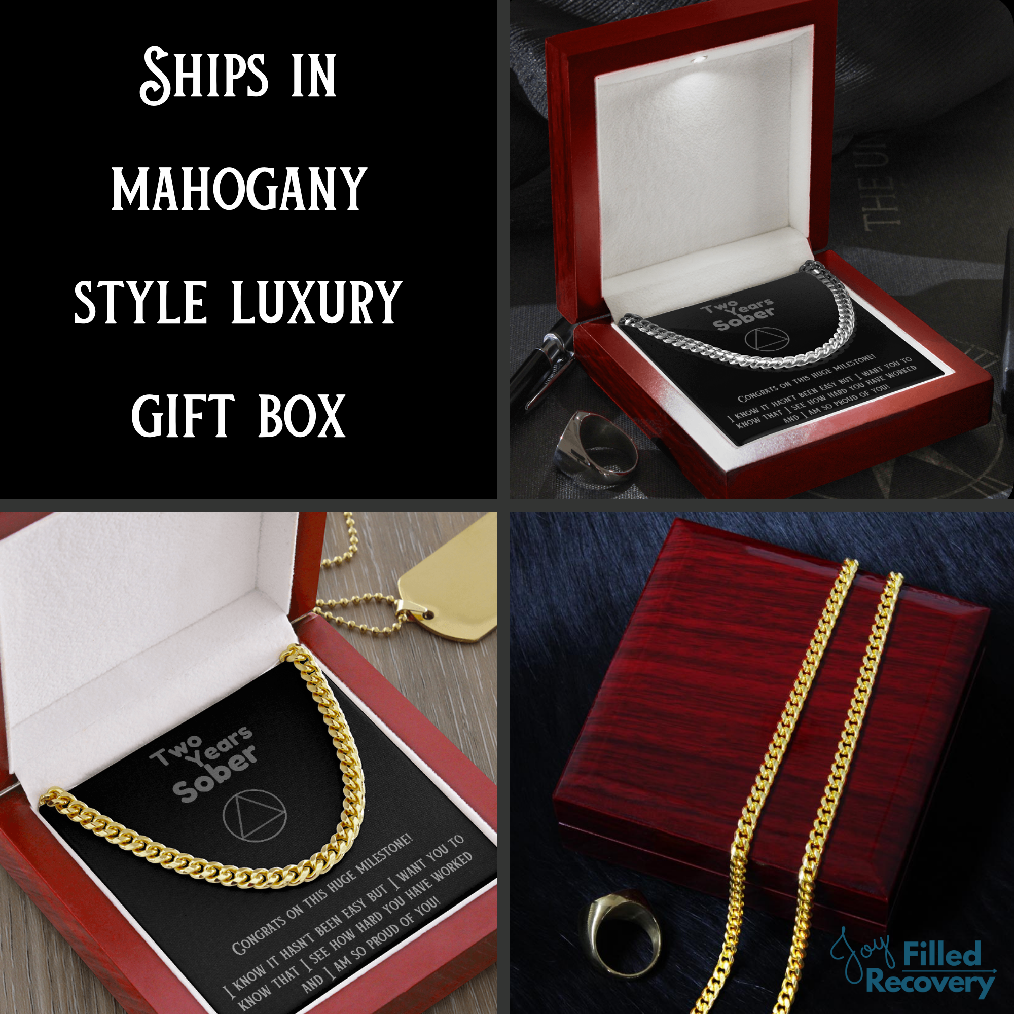 Perfect gift! The watch was amazing and the box that it came it was the perfect touch! Joy Filled Recovery helped me and worked with me through the issues I was having with the watch during the order process! Highly recommended
